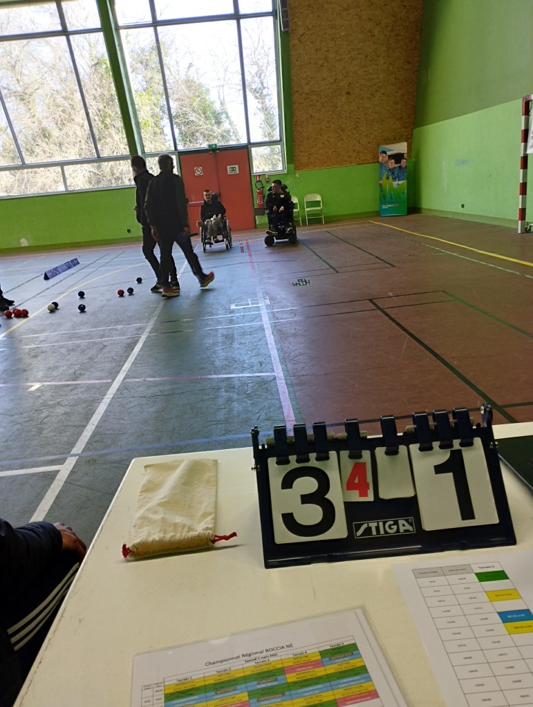 Samedi 1er mars j’avais une compétition de boccia avec Stéphane C et Eva. Nous sommes partis de très bon matin, accompagnés de Christelle (AMP/Aide Soignante) afin de se rendre pour 8h à Ploufragan. Une journée fatigante physiquement, mais je me suis éclatée.