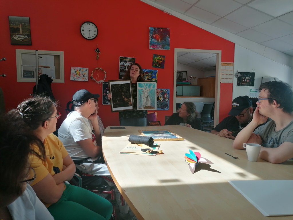 Cet atelier venait introduire le projet d’exposition de tableaux provenant de la collection du Musée des Beaux-Arts de Quimper, prévue du 19 mai au 11 juillet 2025 au sein du Pôle Keraman. Nous accueillerons à nouveau Anne HAMONIC, pour deux autres séances afin de faire la sélection des 20 tableaux qui seront exposés.