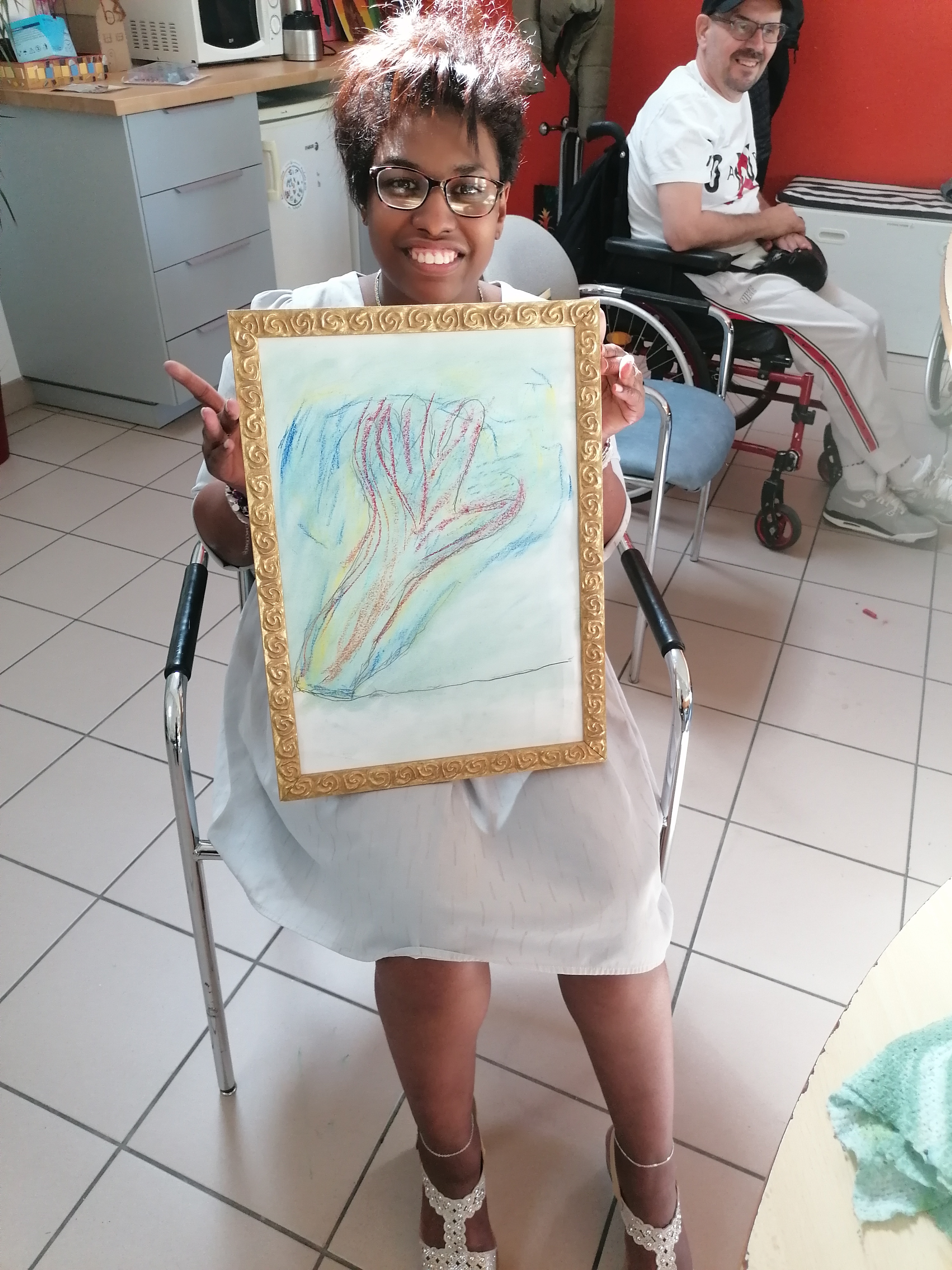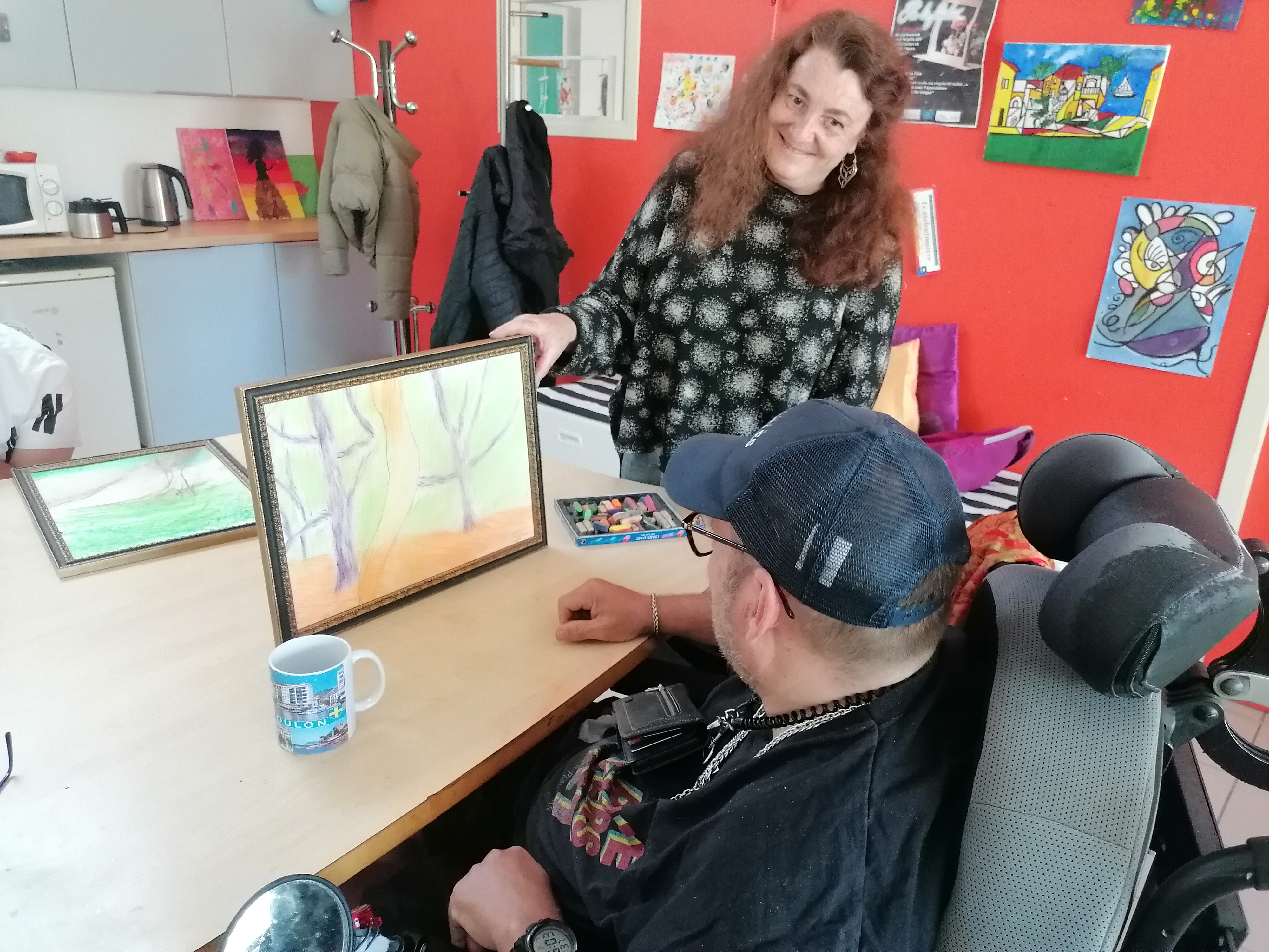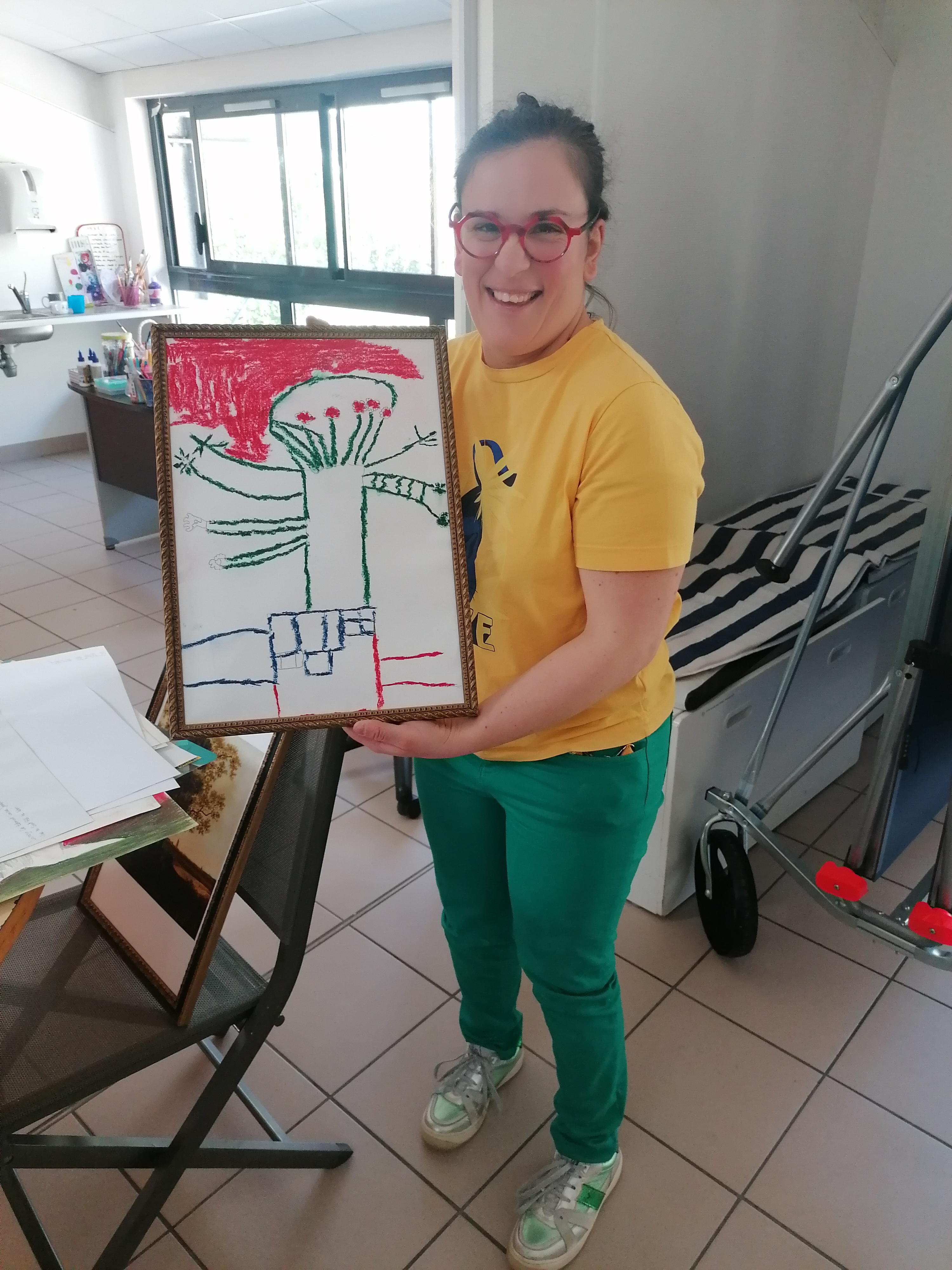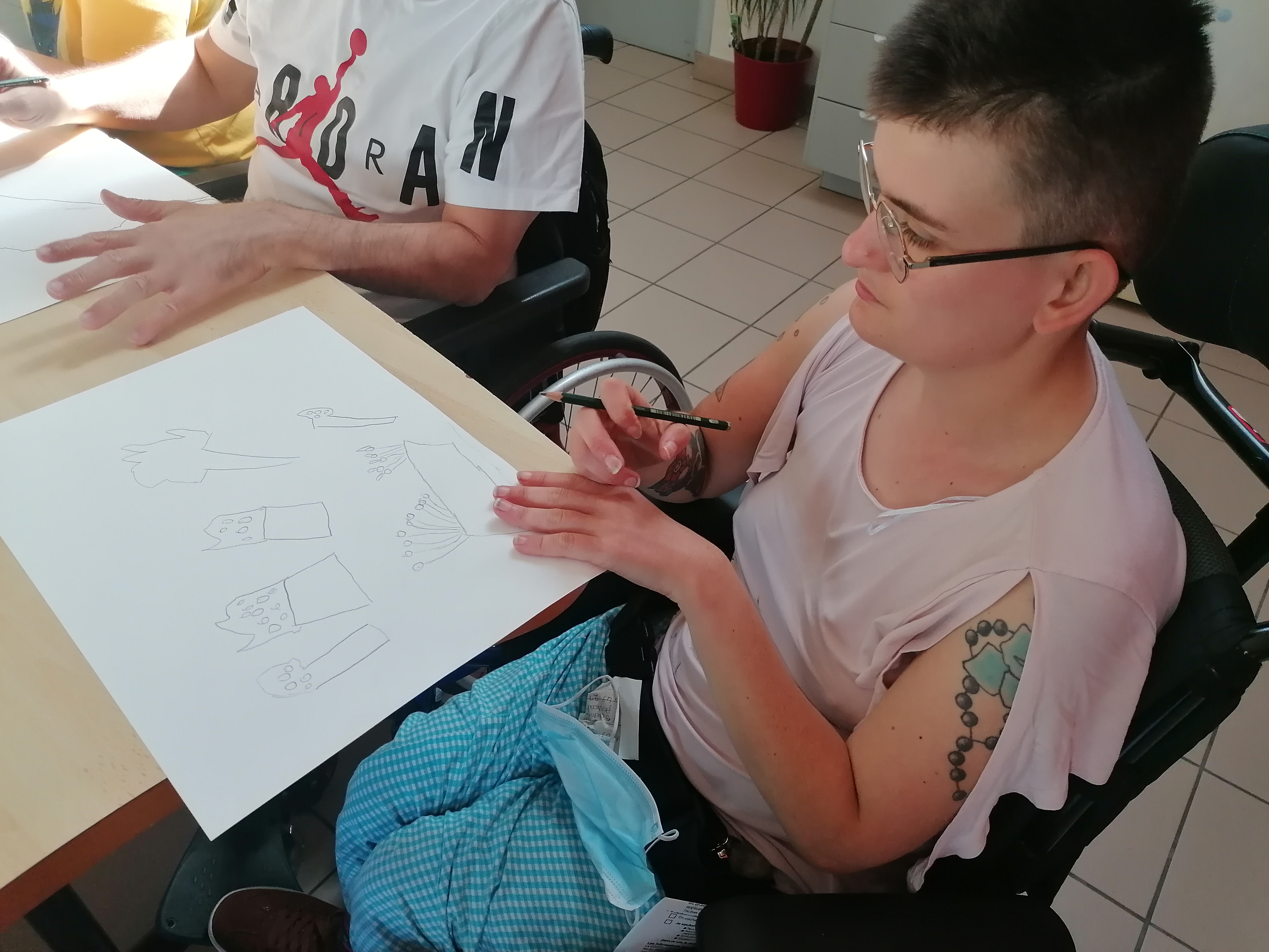 Le groupe s’est pris au jeu et a réalisé de très beaux portraits d’arbres. C’est toujours un plaisir de dessiner, de jouer avec la matière pour faire apparaître des formes et des couleurs. Cela permet de s’évader et de se concentrer un temps pour éveiller l’imaginaire et la créativité de chacun.