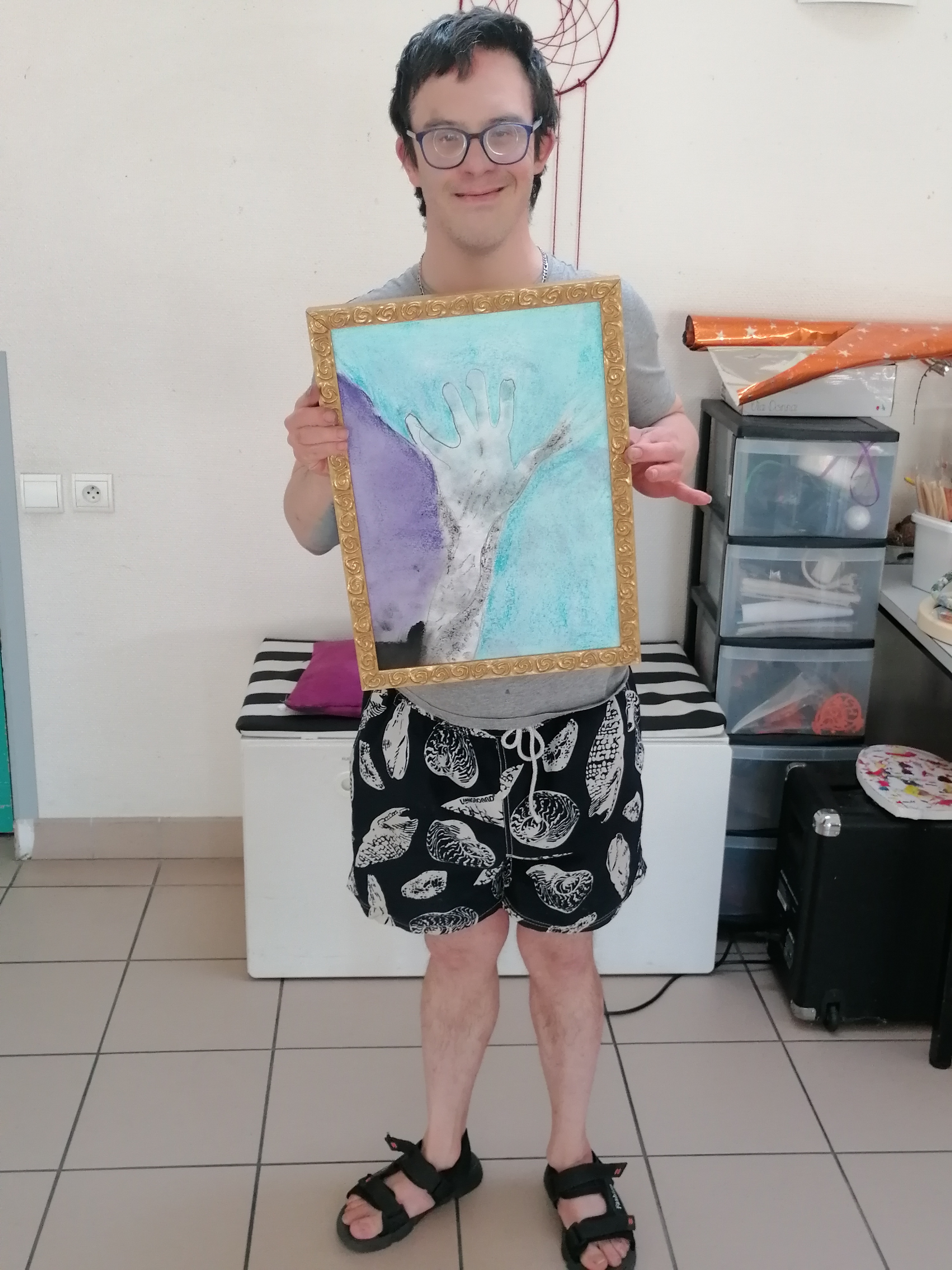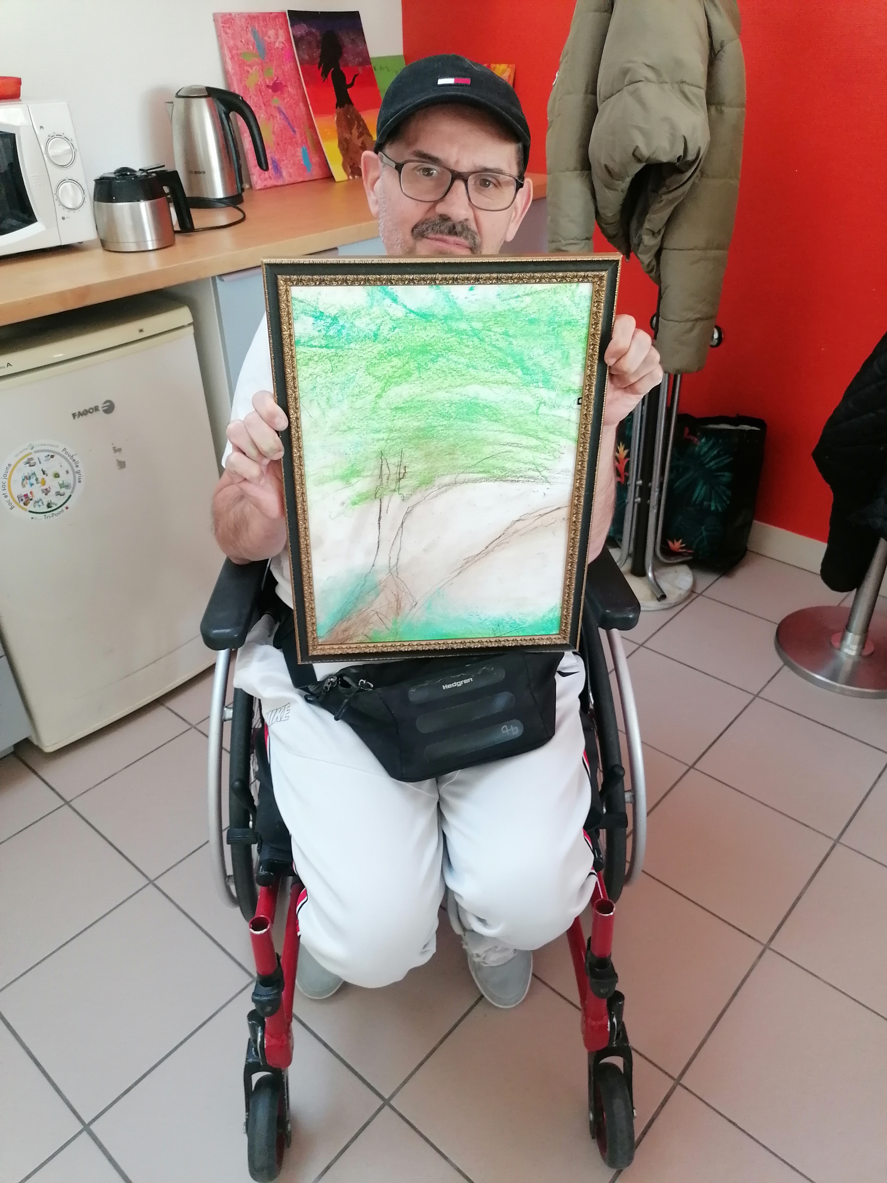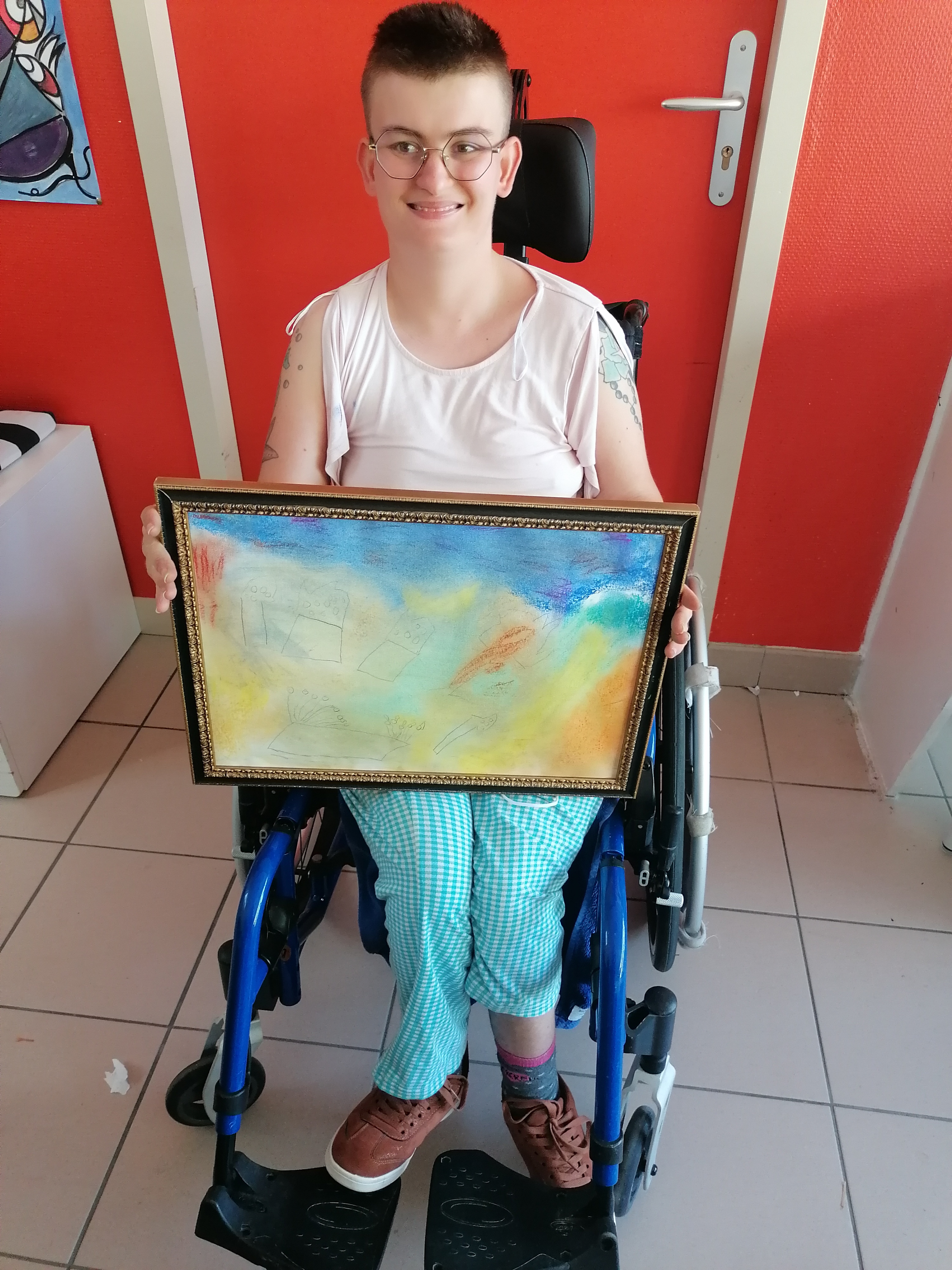 et le pourtour de manière colorée à l’aide de pastel secs.