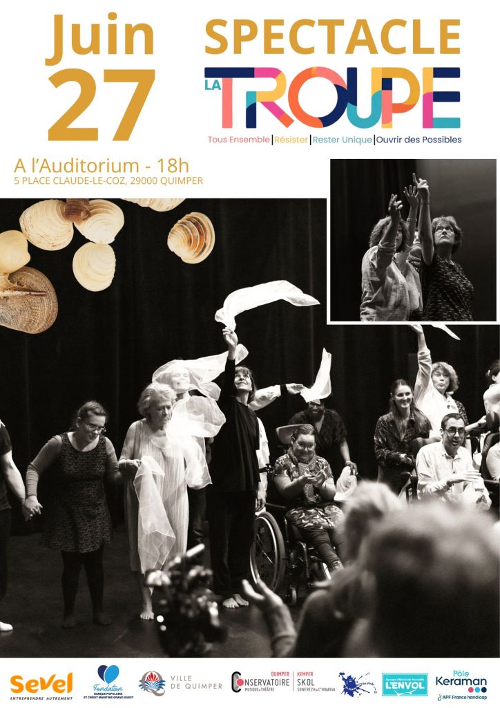 La T.R.O.U.P.E de danse inclusive composée de personnes du Pôle Keraman et du GEM l’Envol et dirigée par la chorégraphe Laure FA de la compagnie De l’encre sur les pieds se produira le vendredi 27 juin de 18h à 19h à l’Auditorium du Conservatoire de Quimper.