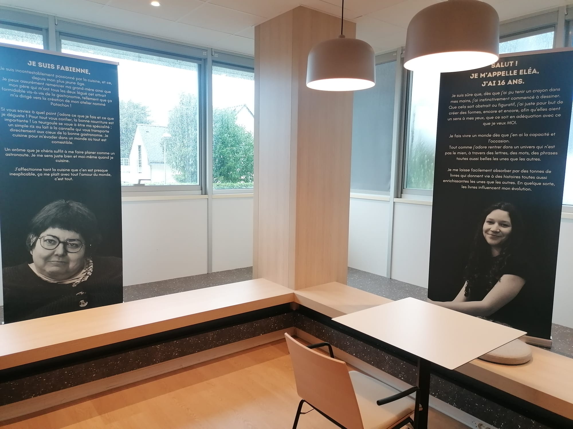 « Lors de mon passage au Crédit Agricole, une employée m’a demandé si j’avais besoin d’aide et ce que j’attendais. Je lui ai expliqué que je faisais partie de l’exposition et c’est à ce moment-là qu’elle a reconnu mon visage. Elle m’a dit qu’effectivement mon visage ne lui était pas inconnu, qu’elle avait vu l’exposition et lu mon portrait passion. Elle m’a félicité et m’a dit que je me battais. Du coup ça m’a donné de la valeur, j’étais fière ! » Fabienne.